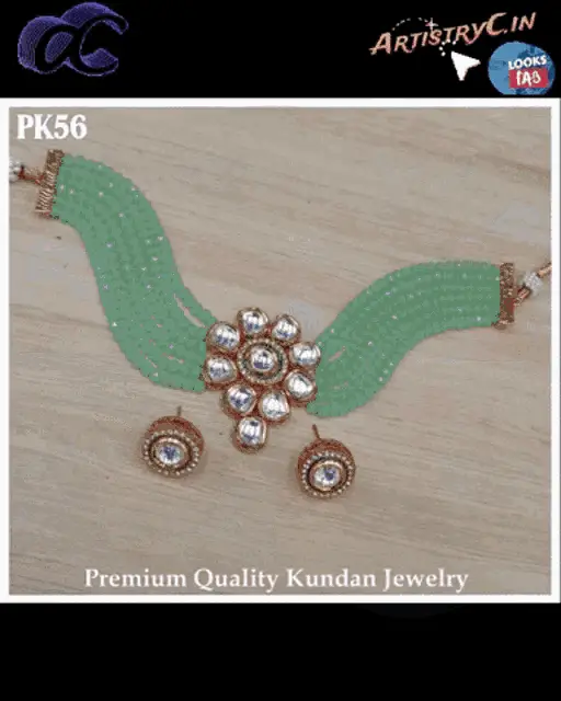 A pair of handcrafted Uppunuti Home earrings, featuring intricate pearl and gold bead work with green accents.