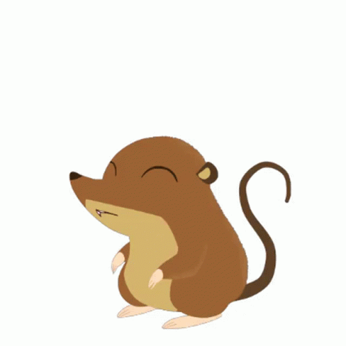 Animated brown mouse with a long tail, happily jumping and celebrating with joy.