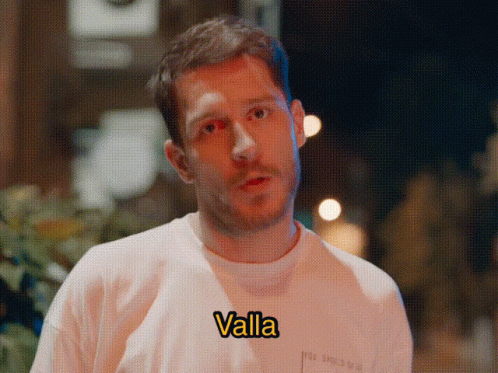 Uraz Gediz, wearing a white t-shirt with 'Valla' written on it, speaks directly to the camera.