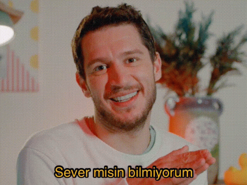Uraz Kaygılaroğlu smiles with hands clasped, saying 'Sever misin bilmiyorum' (I don't know if you'll like it).