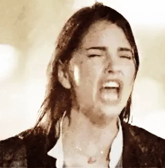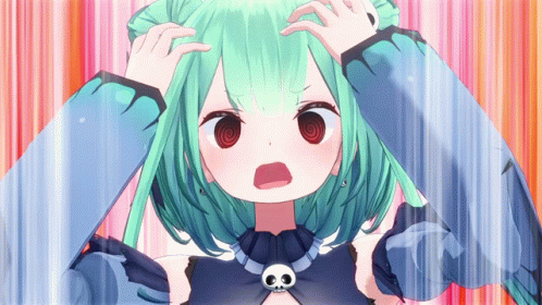 Uruha Rushia from Hololive, with mint green hair and a skull necklace, reacts in shock or screams, hands on her head.
