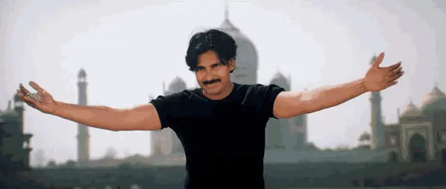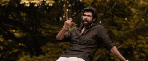 Rana Daggubati from Ustaad Bheemlanayak, wearing sunglasses and a black shirt, with arms outstretched.