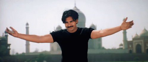 Pawan Kalyan, also known as Power Star, strikes an iconic pose in a black shirt in front of the Taj Mahal, from Ustaad Ghani Balu Abcdefg.