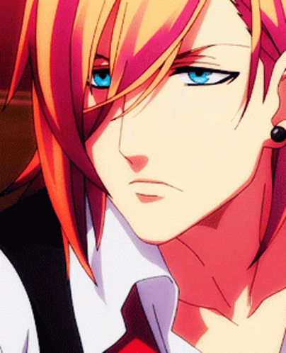 Close-up of Jinguji Ren from Uta no Prince-sama, featuring his blue eyes and distinctive red and blonde hair.