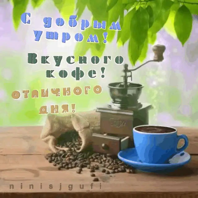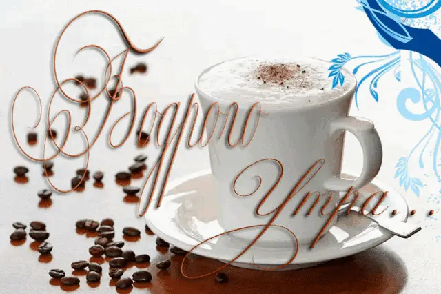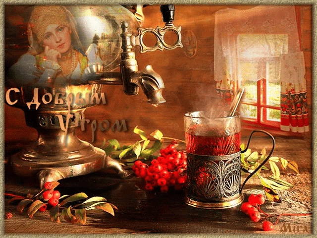 A cozy scene with a cup of coffee, teapot, lemons, and autumn leaves, wishing a good autumn morning.