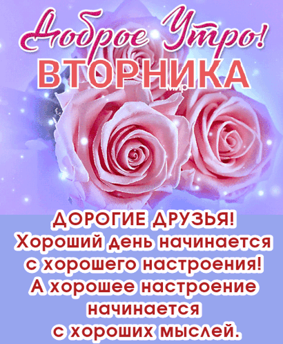 A vibrant greeting card wishing a good morning on Tuesday, featuring pink roses and an uplifting message.