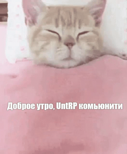 Cute cat sleeping soundly on a pink blanket, wishing the UnTRP community good morning.