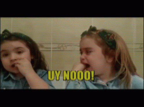 Toddler Jimena cries with "UY NOOO!" text overlay, while Cayetana looks on.