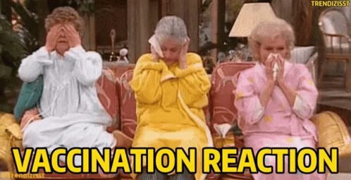 The Golden Girls react to vaccination side effects, mimicking the Three Wise Monkeys.
