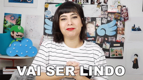 Sandra Landeiro enthusiastically says 'Vai Ser Lindo' (It Will Be Beautiful) in front of a picture-filled wall.