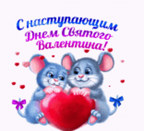 Two adorable cartoon mice cuddle, holding a red heart, celebrating the upcoming Valentine's Day.