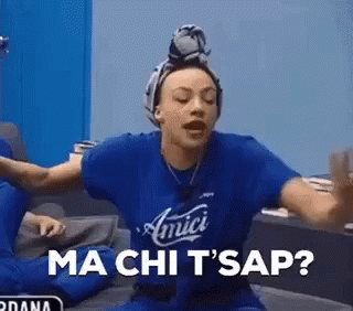 Valentina, wearing a blue t-shirt, gestures while asking 'Ma chi t'sap?' (But who knows?).