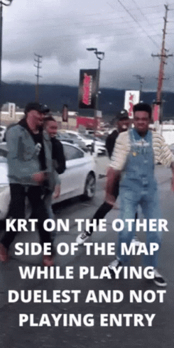 A man in overalls dances as a meme about KRT playing Duelist in Valorant, not entry, is displayed.