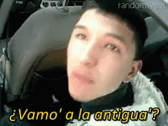 A man in a car asks, 'Shall we go old school?' with a direct gaze at the camera.