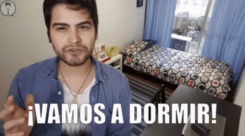 Fabio Torres encourages viewers to go to sleep, saying '¡Vamos a dormir!' from his bedroom.