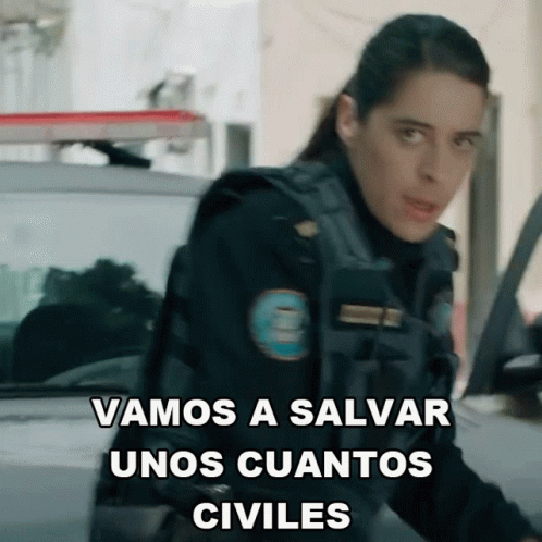 A woman in a tactical uniform runs with determination, declaring 'We are going to save a few civilians' on a mission.
