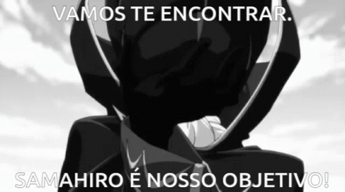 A black and white video featuring a character resembling Lelouch from Code Geass, with text about finding Samahiro.