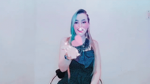 Vane Vane Vanessa blows a kiss, sending a sparkling pink heart.