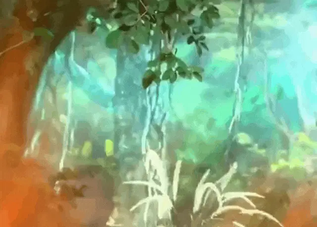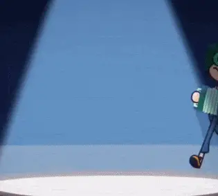 Varu from 13 Cards transforms from distressed to smiling, wearing hypnotic green glasses and holding a paintbrush.
