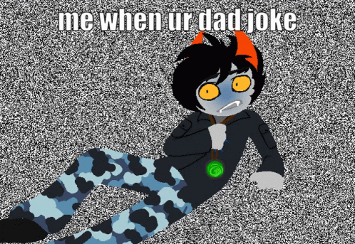 Vasterror Laivan Ferroo, a Homestuck character, reacts to a 'dad joke' with a distressed expression.