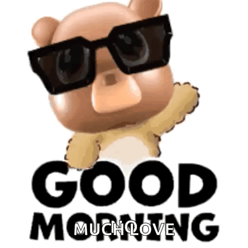 A cute animated bear, associated with Vceezy, wearing sunglasses and a scarf, wishing "Good Morning Much Love".