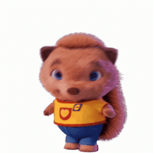 A cute animated hedgehog wearing a yellow shirt and blue jeans gives a thumbs up.
