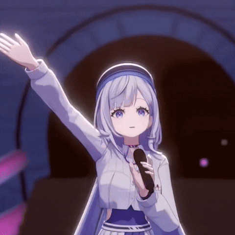 Vee Sensei, the VTuber from V4Mirai, waves to the audience while holding a microphone.
