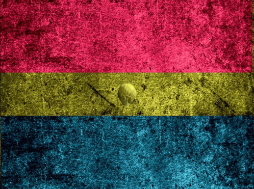 A single green brussels sprout rests on a vibrant, textured background of red, yellow, and blue stripes.