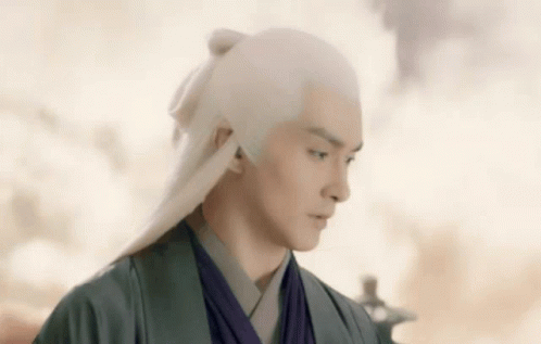 Vengo Gao as Dijun, a character with long white hair and traditional robes, looking pensive in an ethereal setting.