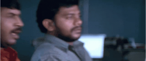 Raviteja and other men look shocked with wide eyes and open mouths.
