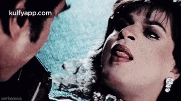 Patti Russo playfully sticks out her tongue in a dramatic close-up, adorned with striking jewelry.
