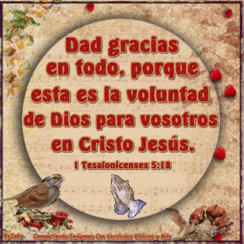 A beautiful image displaying the Bible verse 1 Thessalonians 5:18 in Spanish, surrounded by nature elements.