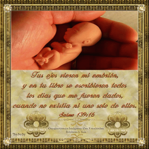 A baby's hand held by a woman's hand, with a biblical verse overlay.