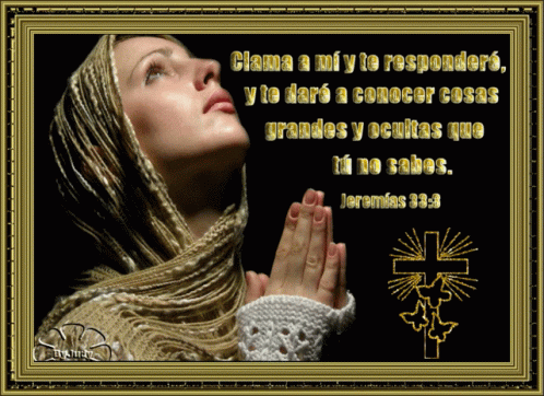 A woman prays with an open Bible, featuring the Spanish verse Matthew 18:20: 'For where two or three are gathered in my name, there am I in the midst of them.'