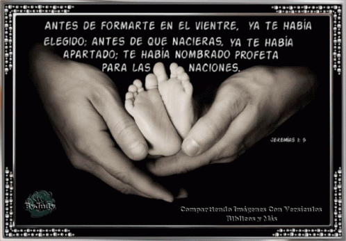 A powerful Bible verse from Jeremiah 1:5, 'Before I formed you in the womb I knew you,' displayed over an image of hands holding a baby's feet.