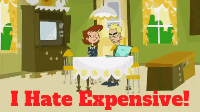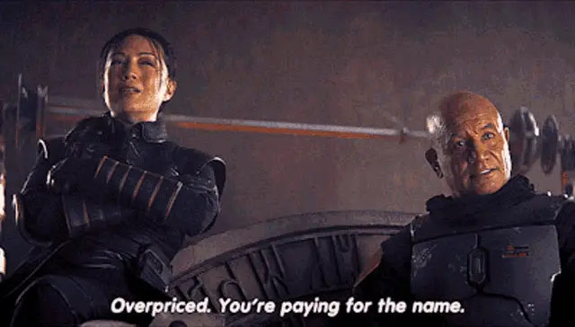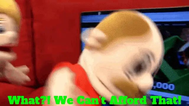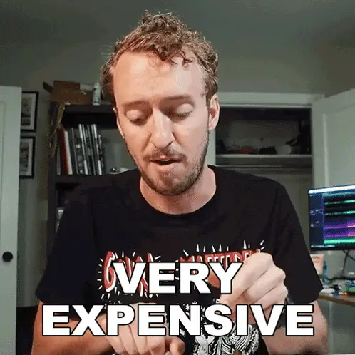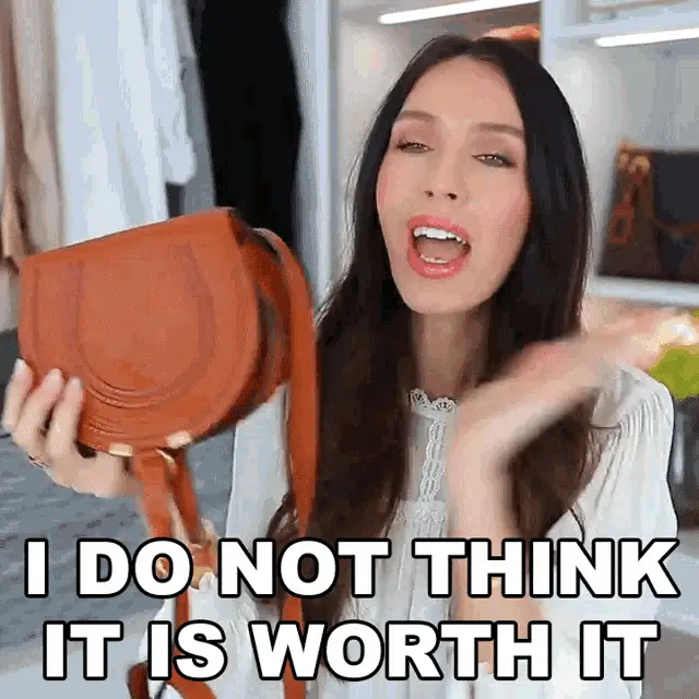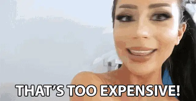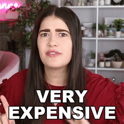 Marissa Rachel expresses something is very expensive, wearing a red top with thick eyebrows.