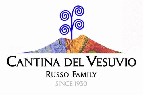Logo for Cantina Del Vesuvio winery, featuring Mount Vesuvius and a stylized plant, with 'Russo Family Since 1930'.