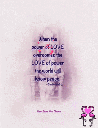 Jimi Hendrix's powerful quote: 'When the power of LOVE overcomes the LOVE of power the world will know peace.' Animated with hearts.