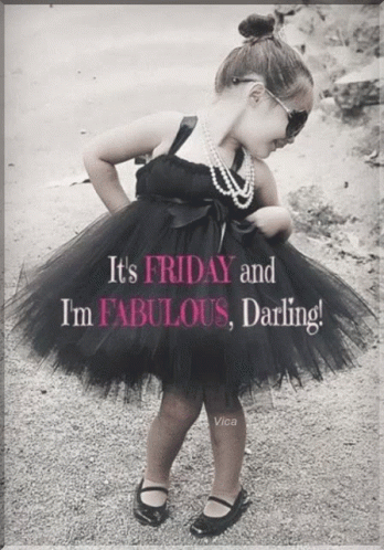 A little girl in a black tutu dress and sunglasses, looking fabulous on Friday with a cheerful message.