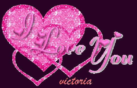 Two shimmering pink glitter hearts with the message 'I LOVE YOU VICTORIA' for Victoria Vickie.