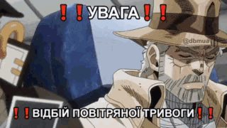JoJo's Bizarre Adventure characters announce the cancellation of an air raid alert in this popular meme.