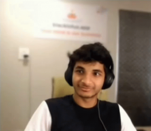 Vidit Gujrathi, wearing headphones, smiles and winks at the camera.