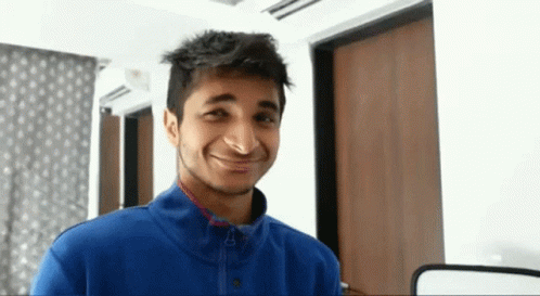 Vidit Gujrathi makes a funny, expressive face while looking at the camera, wearing a blue jacket.