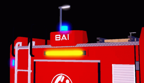 A red Vigili Del Fuoco fire truck with 'BAI' on top, featuring flashing blue and yellow emergency lights.