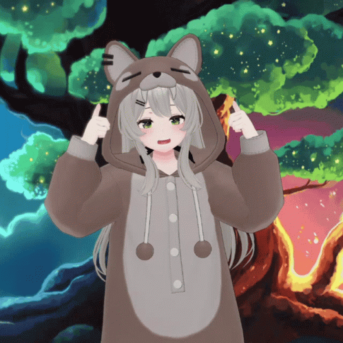 Viichan (비챤) from Isegye Idol in a cute animal onesie, posing with thumbs up in a magical forest.