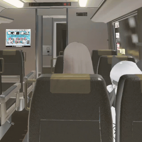 Viichan, the virtual idol, enjoys a scenic train journey, looking out the window with a cheerful expression.