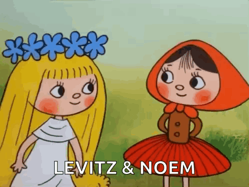 Animated scene from 'Vila Amalka' featuring two girls, one with a flower crown, with 'LEVITZ & NOEM' text.