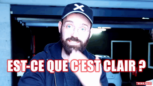Sylvain Vilebrequin, wearing a black hat, asks 'Est-ce que c'est clair ?' directly to the camera.