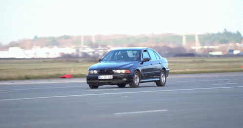 A black BMW, featured by Vilebrequin, dramatically jumps over a 'dos d'âne' (speed bump) at high speed.