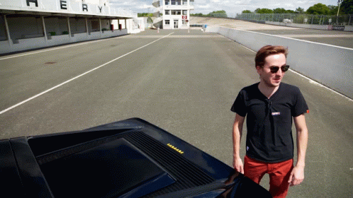 A black Renault Laguna V6 Coupe, associated with Vilebrequin, drives on a race track.